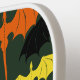 A wing of dragons in the colours of black, brown, red, orange, yellow, blue, and green fly open wings across a deep dark green backdrop soaring upwards. The dragons are drawn in a tribal tattoo style.