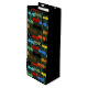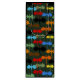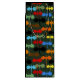A wing of dragons in the colours of black, brown, red, orange, yellow, blue, and green fly open wings across a deep dark green backdrop soaring upwards. The dragons are drawn in a tribal tattoo style.