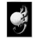 A silver dragon hovers in darkness as he gazes into a glowing crystal ball. Who knows what secret visions he sees in its mysterious depths as he stares enraptured by his treasure?