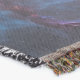 A quality printed throw has its advantages. This is a much finer weave throw than its loopier cousins, and though lighter, it is worth the investment for custom room accessorizing. The back is much prettier than the typical brown, and the fringe on the long sides very vivid, the selvage nicely done. Before photographing, I washed the throw in cold water, delicate, with a thicker woven throw the same size. On tumble dry low, this throw was dry in half the time as the other. This is a very practical quality if you use throws for furniture covers or to wrap up in frequently. The sleekness of the fabric makes it a great layer for accenting or protecting without the feeling of sitting on too much stuff. Perfect for napping or when you feel a light chill coming on. The color printing is beautiful and on this fabric, matched the design and color of my Photoshop image. This is an advantage for blending room fabrics and colors. The fringe on the short sides prints the colors from the design image and therefore varies from the side fringe. I streaked a white fractal line through the plaid pattern to give the illusion of weaving. This printed as crisp as an illusory thread, and put some white in the short side fringe, showing another advantage of print vs loomed- for artistic purposes, line lines, detail, and color integrity can be planned and preserved. My loomed throws have color limitations and more of a needlepoint texture. Print throws reproduce an exact image. The throw felt a little stiff straight out of the package, but this went away in the first delicate wash. Of course I searched the wash water for ink or bleeding and there was none.