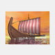 Drakkar or viking ship floating on the ocean by sunset -3D render
