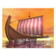 Drakkar or viking ship floating on the ocean by sunset -3D render