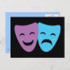 This drama illustration features a purple laughing comedy mask with a smile and a blue sad crying tragedy mask with a frown! This classic theatre masks design is the perfect gift to but for an actor or actress or anyone who loves drama, Shakespeare or performing on the stage!
