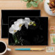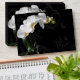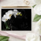 Celebrate your wedding, or special occasion in style with this inspiring and passionate white orchid on black swirl background design. Features close-up of a picturesque potted white orchid flower contrasting against a black bacground with graphic swirls.