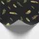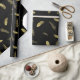 Dramatic Boho gift wrap  pattern features golden floating feathers on black background