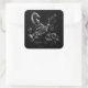 features a visually striking representation of a chess scene depicted in black and white. The primary focus is on the intense moment when the knight piece (commonly referred to as a horse) captures or defeats the king piece, resulting in a dramatic outcome. The king piece is shown breaking apart, symbolising its defeat and adding a dynamic element to the design. The artwork is rendered using a monochrome colour scheme, meaning it utilises only black and white shades, providing a strong contrast and emphasizing the visual impact. The absence of colour enhances the dramatic effect by emphasizing the play between light and shadow. The design shows the chessboard with some surrounding space. The horse as the central element is positioned in a dynamic stance and captivates the viewer's attention. It might be depicted in the midst of action, with its head held high and one or both hooves raised in a conspicuous manner. This captures the essence of the knight's unique L-shaped movement pattern in chess. Overall, the design creates a powerful and visually appealing depiction of a critical moment in a chess game, where the horse piece dominates the scene by defeating the king piece. The monochrome colouring and the dramatic depiction of the broken king further increase the emotional intensity of the work of art.