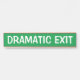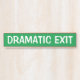 This funny sign can be hung on the back of front doors, dorm room exits, sliding doors, auditoriums, stage doors, classroom exits, office doors and almost anywhere to make your guests, students, or actors laugh when they go outside or leave your home or office. The graphic says Dramatic Exit in white text against a green background.