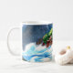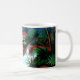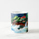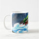 Dramatic painting of a home on a cliff top of a tropical island with waves crashing high on the rocks.