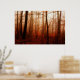 Dramatic red foggy winter snowless forest poster