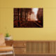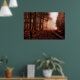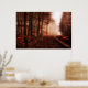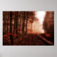 Dramatic red foggy winter snowless forest poster