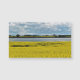 A vibrant yellow canola field blooms under a dynamic sky, with patches of fluffy clouds casting shadows on the landscape. In the background, a contrasting band of dark green trees separates the field from a tranquil expanse of water. This image was taken near Streatham in Victoria, Australia.