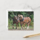 A photographic postcard of two draught horses, bay and chestnut, in harness, being walked on a longrein.