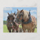 A photo of two draught horses, one bay and one chestnut, taking a break at a ploughing (ploughing) competition.