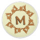 Initial that is surrounded by a circle of leaves created from an image of an angled "wrought iron" bracket replicated 8 times, with branches forming a central octagon. Image is shades of brown on a light yellow/green background.