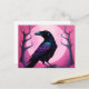 Drawing of a raven on neon pink background postcard