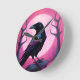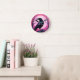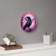Drawing of a raven on neon pink background round clock