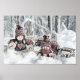 Drawing of gnomes in a winter and snow scenery poster