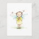 Drawing of little fairy with flower postcard