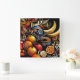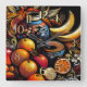 Drawing Stylised Still Life Vase Fruit Square Wall Clock