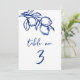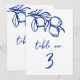 This coastal table number card features a hand-drawn lemon branch illustration in deep coastal blue, paired with relaxed handwritten-style numbering for an effortless seaside aesthetic. The loose sketch lines and organic fruit motif give it a refined, artsy Mediterranean feel, fresh, summery, and understated. Perfect for destination events, al fresco dining, or modern coastal celebrations with a natural, casually elegant vibe.