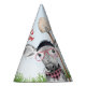 Personalized cute farm, farmyard or barnyard animals birthday party hat featuring three cute animals. A pig, horse and cow. The design also includes some grass and a spade and rack.