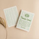 As you see this baby shower thank you cards features hand drawn green special delivery pizza theme. With hand drawn sliced pizza with hand written script of thank you and thank you paragraph template in green on watercolor lighter green stripes. With family last name in the bottom. All of this design template is easily customisable by clicking on the personalisation button.