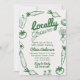 If you looking for an elegant unique and easy customisable locally grown themed gender neutral baby shower invitation this is perfect for you. As you see it features a retro bold handwritten script of locally grown in green. And hand drawn vegetables on the both sides. All in green on cream background. Very easy to customise and use. So grab it and male your invites very engaged.