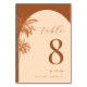 Drawn Palm Tree Terracotta Monogram Beach Wedding Table Number