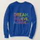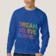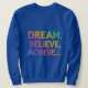 This T-shirt features a simple yet powerful design with the words "Dream. Believe. Achieve.." printed in a bold, modern font across the chest. The text is centred and framed by a thin, white border. The background of the T-shirt is a light blue colour, which evokes a feeling of calm and inspiration. The overall design is simple and elegant, and it would make a great gift for anyone who is striving to achieve their dreams.