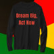 Embrace a proactive mindset with this bold "Dream Big Act Now" design. The striking red text on a black background exudes passion, determination, and drive. Perfect for Black History Month or as a year-round inspirational message, this design encourages ambitious dreams and immediate action. Ideal for those striving to make a difference and achieve greatness, it's a meaningful gift or personal reminder to stay motivated and act boldly.