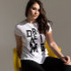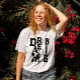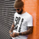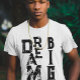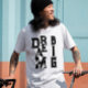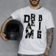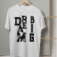 This Simple minimalist Typography text based design with black ink letters, featuring a cool modern inspiring saying and motivational quote Dream big, displayed in a cool aesthetic styleover a classic white t-shirt for men and women.