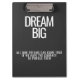 Stay productive and inspired with this durable clipboard, featuring the bold "Dream Big" quote: "All our dreams can come true if we have the courage to pursue them." Perfect for students, professionals, and creatives looking for daily motivation and organisation. A smart addition to classrooms, offices, or studios, it keeps your papers secure while uplifting your mindset.