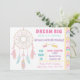 Dream Big! This pastel dream catcher birthday invitation is perfect for setting the theme for your boho birthday party!