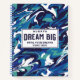 This inspirational design features a blue, white, and green liquid art pattern with dark blue bold fonts. The main text reads "Dream Big". You can edit the rest of the text. You may use this pretty notebook to keep a gratitude journal, write down your goals, dreams, desires, and more. Click "Customise" to edit font colour, font size, and text.