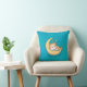 Cute blue pillow with a sleeping orange, ginger cat sleeping on a yellow crescent moon. Three yellow stars are dotted around the cats ears. Below the cat in a simple black scripts reads "Dream Big, Nap Often"