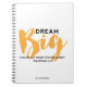 An inspirational typographic design on your notebook to write your plans, journalling notes etc. The main caption reads "Dream big" in black and yellow in a mix of sans serif and brush lettered font. Directly underneath is the popular Bible verse Philippians 4:13 - "I can do all things through Christ". Personalise with your name.