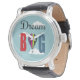 Dream big text design illustration with colourful hot air balloon and cloudy sky decoration. It is possible to change the background colour and to add different one to the design with your choice.