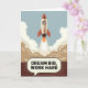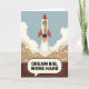 Send an explosive message of ambition and success with this awesome retro-styled card! The design features a classic red and white rocket ship blasting off through clouds of smoke, symbolizing a great achievement or new beginning. The motivational quote, "DREAM BIG, WORK HARD," is highlighted in a bold speech bubble. This card is perfect for graduation, congratulating a new entrepreneur, celebrating a new job or launch, or simply sending a powerful message of determination and success. The vintage comic art style makes it unique and appealing to a wide audience, including students and business professionals.
