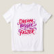 Fuel your ambition with this "Dream Bigger Act Faster" t-shirt. This motivational design inspires taking swift action towards your biggest dreams. Perfect for goal getters, dream chasers, and anyone ready to turn aspirations into reality, this tee is a reminder to seize the day. Find more inspirational apparel in our shop. Ideal for everyday wear and making things happen.
