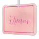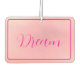 "Dream" in bright pink script font with bright pink border air freshener. The background is a gradient pink photograph. Perfect gift for a friend, loved one or yourself.
