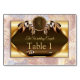 A dream-catcher design with a gold & brown trimmings that includes a round bamboo circle web of life with brown tones feathers and red beads on a soft feather background to personalise your very own stationary theme for number and name cards for each quest on the table.
