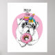 Image By Afishka | Shutterstock. Image ID: 1229091874 | Adorable puppy Pug in a unicorn mask: wig, horn and with a pink doughnut. Dream come true - lettering quote.
