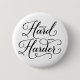 Stylish pin button featuring modern typography, "Dream hard, work harder". This inspirational quote is available in a variety of products.