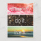 Dream it, do it, live it design. Pink clouds, busy city at night, and beach at sunset.