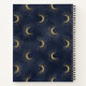This dream journal has a dark blue background, and it is decorated with modern celestial-themed design with a fun and modern moon pattern.