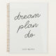 A simple planner with informal causal handwritten script typography quote "dream plan do" in black on a soft grey background. The text can easily be personalised for a design especially for you! The perfect inspirational gift or accessory for any purpose!
