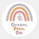 Dream, plan, do motivational colourful boho rainbo classic round sticker