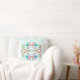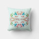 A soft and bright mandala design is featured in muted red, blue, green, and burgundy on a light aqua background. On one side of the pillow, the inspirational message to "Dream," whether this means future goals and visions -- or relaxing into a restful sleep. On the other side is the design alone, now smaller, also on a light aqua background.