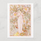 A postcard depicting a fairy woman standing amidst a pink wild rose bush. The original illustration was created by Laura Coombs Hills (1859-1952) for the calendar, Dream Roses (1897). Hills was an American artist renowned for her flower paintings.