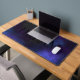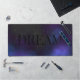 Desk mat with the word 'dream' in solid black capital letters set against a soft black starry night sky amid blue and purple nebula space clouds. Subtle, dark, and deep like the mysterious realm of dreams. Use the text template to add a name or inspiring short quote. ♡ Idyllfire